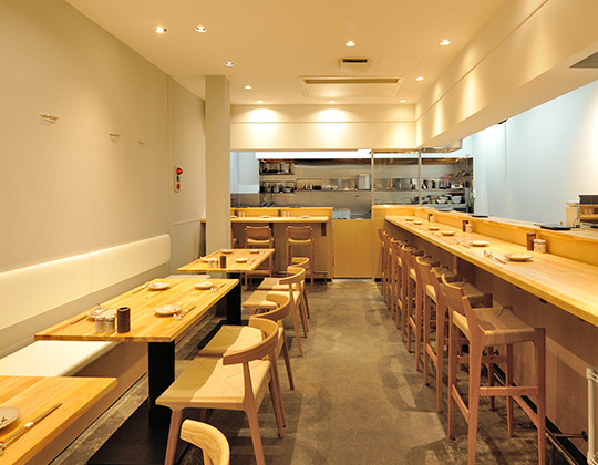 店内は明るく、温かみのある雰囲気。あえて個室を設けず、すべてのお客様が一緒に楽しい時間を過ごせる空間づくりを大切にしています。